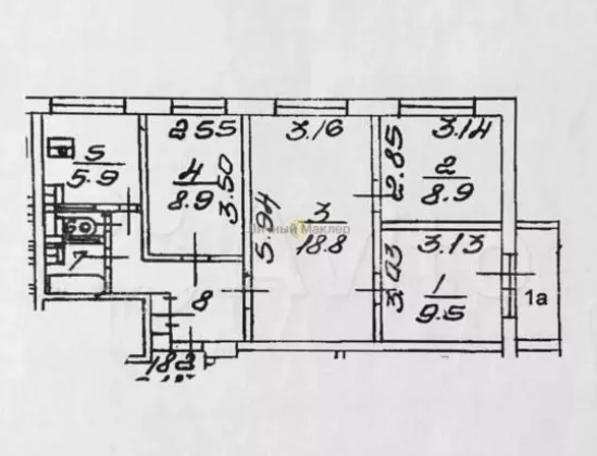 Комнаты 9.5+8.9+18.8+8.9 кв.м. Лоджия 2кв.м