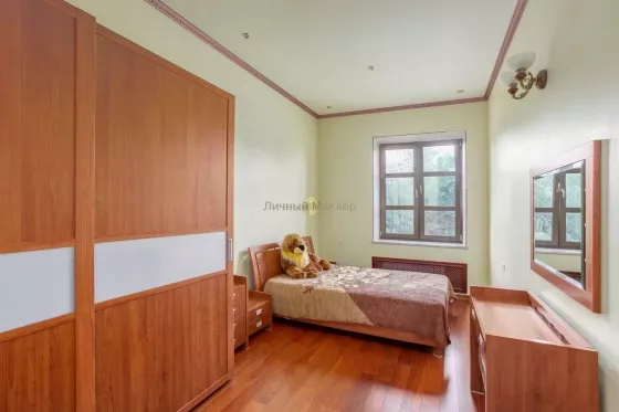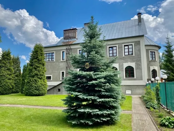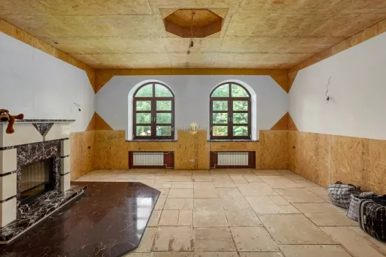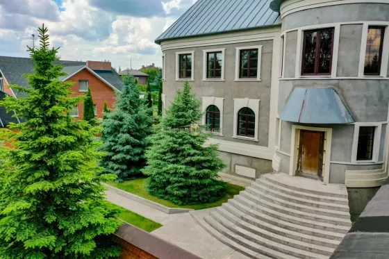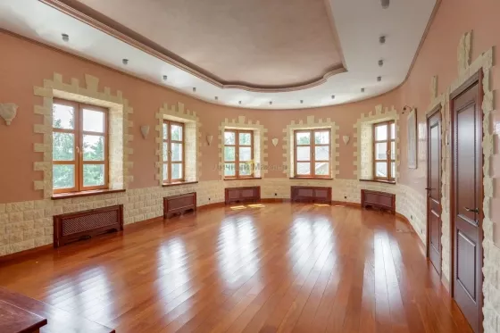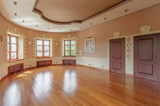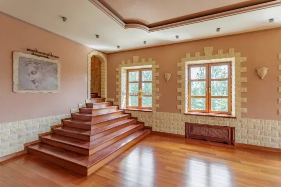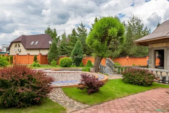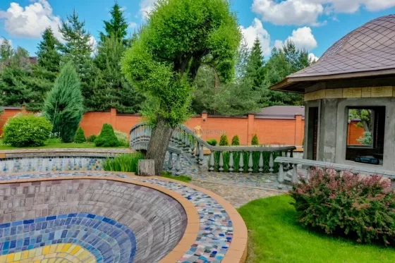 Рублево-Успенское, Каширское или Можайское шоссе 14 км от МКАД, деревня Солослово, в районе п. Горки-2, вблизи г. Одинцово. Усадьба 671 кв. м, второй дом 36 кв. м, участок 30 соток, современная просторная усадьба в престижном районе на уютной закрытой территории Новое Солослово. Дом 671 кв. м, 4 этажа, материал кирпич, перекрытия ж/б, окна пвх, кровля оцинковка; наружная отделка - Отштукатурен в 2019г; внутренняя отделка - Отделка выполнена из качественных дорогих материалов, котельная (котел Viessmann) и инженерные коммуникации сделаны по современным стандартам безопасности, надежности и долговечности; полы - Во всех санузлах, душевой, постирочной, кухне и на цокольном этаже теплые полы; газовое отопление. Планировка: Цоколь - (готов) - бассейн 8х4, сауна, душевая, санузел, комната отдыха/бильярдная, танцпол около бассейна с дискотечным шаром и дым-машиной, две комнаты с отдельными выходами на улицу у каждой (одна для собаки с выходом на отдельно огороженную территорию на участке, площадь огороженного участка равна теннисному корту; вторая планировалась под тренажерный зал), котельная; 1-й этаж - (готов не весь) - гараж на две машины с крытым кирпичным пандусом от въездных ворот (готов), санузел (готов), постирочная комната с техникой Miele (готова), кухня (под чистовую отделку, готова барная стойка в середине кухни из бетона и отделана мрамором), зал (100 м2, пол готов, потолок из гипсокартона готов, остальное под чистовую), каминный зал (камин готов, остальное под чистовую отделку); 2-й этаж - (готов не весь) - 2 спальни (готовы), компьютерная комната (готова), зал (готов), санузел гостевой с душевой кабиной (готов), хозяйская спальня (под чистовую), хозяйский санузел с ванной (под чистовую), зимний сад (под чистовую, площадь равна гаражу); мансарда - вся под чистовую, зашита ДСП. Зал, две комнаты, хоз. помещения. Другие строения: второй дом 36 кв. м, 2 этажа (построен из кирпича, санузел, кухня, спальня, полностью в жилом состоянии); беседка; каскад прудов 90м2 (летом используются как бассейн) с мостиком и зоной отдыха. Весь участок ухожен, покрыт газоном, сделаны дорожки, растут многолетние туи, ели, ивы у пруда, декоративные кустарники. Коммуникации - все подключены; электричество 20 кВт; газ подключен; скважина (115 м); канализация, септик. Подъездная дорога: асфальт до участка. Безопасность - общее ограждение, шлагбаум. Поселок камерный, на 8 домов, соседи интеллигентные обеспеченные, все построились и живут, въезд и проход на территорию поселка через автоматические ворота. Участок 30 соток / ИЖС / земли населенных пунктов / коттеджная застройка. На участке лесные и садовые деревья, кустарники, газон, дорожки, стоянка, водоем, выполнен ландшафтный дизайн, участок огорожен (Капитальный кирпичный забор 3 м, ворота, калитка, по периметру растут 20-летние Ели). Окружающая местность: Природа - вокруг лес. Рядом развитая инфраструктура: Солидное окружение. Ближайшие населенные пункты: деревня Лапино, деревня Сареево.