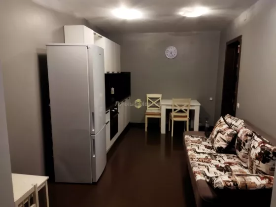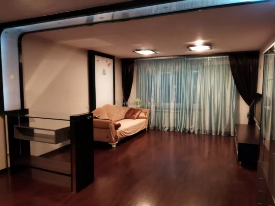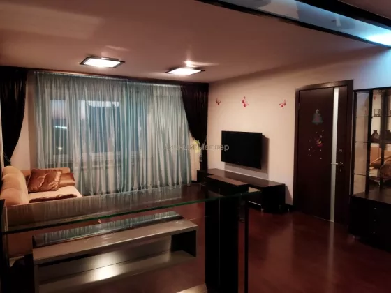 Присутствует вся необходимая мебель и техника для проживания. Просторная кухня. Хорошо благоустроенный и развитый район с детской площадкой.