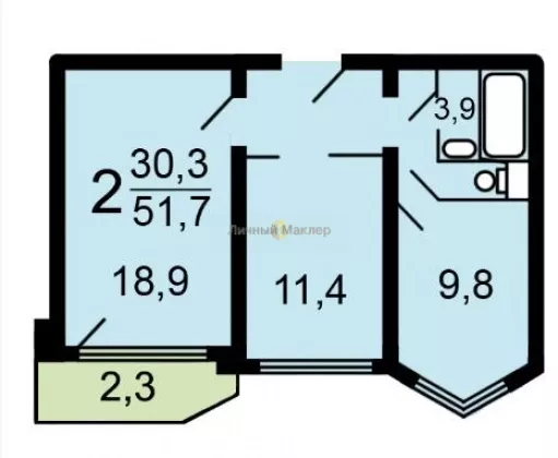 Продается 2-х комн. квартира, 51.7 кв.м., 12/17 эт