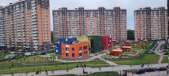Квартира находится в новом жилом районе с действующими школами и детскими садами. От дома в 2-х минутах ходьбы.