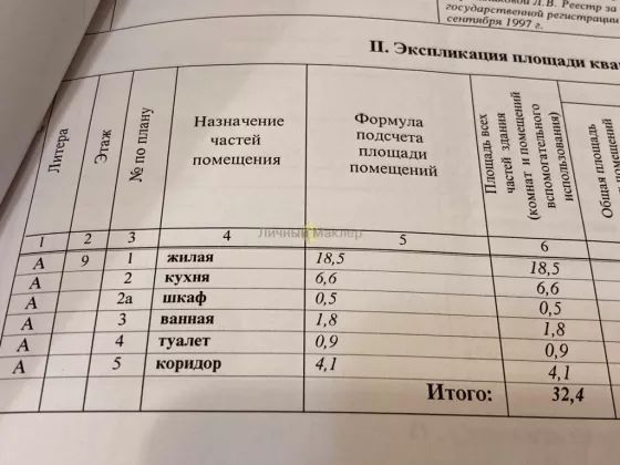 Продается однокомнатная квартира, 32.4 кв.м., 9/9 эт