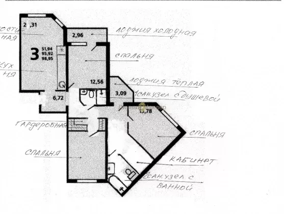 Продается 3-х комн. квартира, 99 кв.м., 11/16 эт